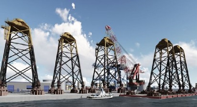3D/BIM models were developed and processed for all elements identified during the analysis, including ports, jackets, wind turbines, vessels, towers, structures, assembly tools, and the electrical substation.
