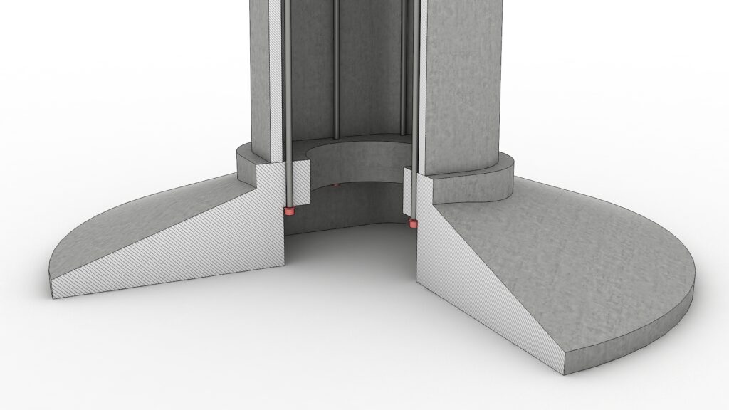- Economía, sencillez y fiabilidad en la cimentación. Al tener mayor peso que las soluciones metálicas se necesita menor volumen de hormigón en la cimentación mientras que al tener mayor diámetro en la base se precisa menos vuelo en la zapata y, por tanto, menor cantidad de armadura.